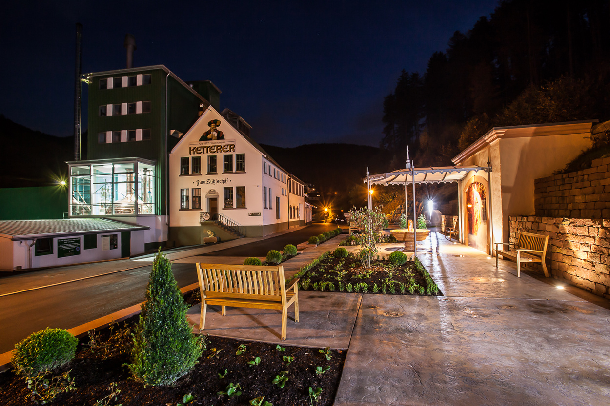 Errichtet wurde der öffentlich zugängliche Trinkbrunnen von der Familienbrauerei Ketterer, zusammen mit einer kleinen Gartenanlage die zum verweilen einlädt. Das an eine kleine Trinkkuranlage erinnernde Areal ist direkt neben dem Familienbetrieb gelegen.