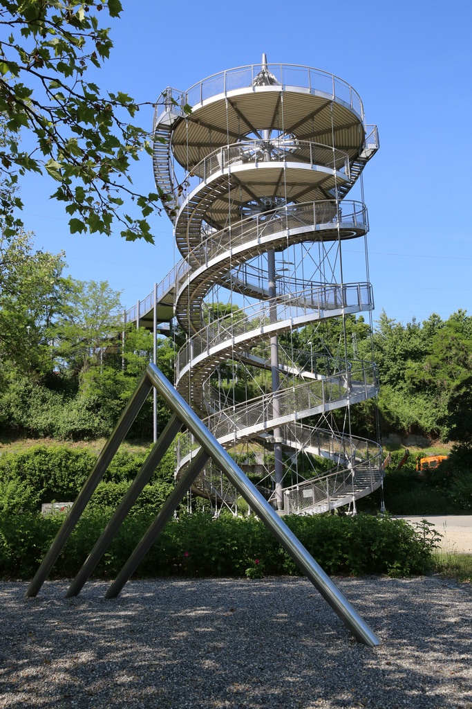 Besonders in der Nacht, wenn der Turm beleuchtet wird, stellt dieser einen architektonischen Blickfänger dar. Die besondere Konstruktion aus einer überdimensionalen Wendeltreppe und den abgespannten Stahlseilen, die dem Turm seine Stabilität verleihen, ist bewundernswert.