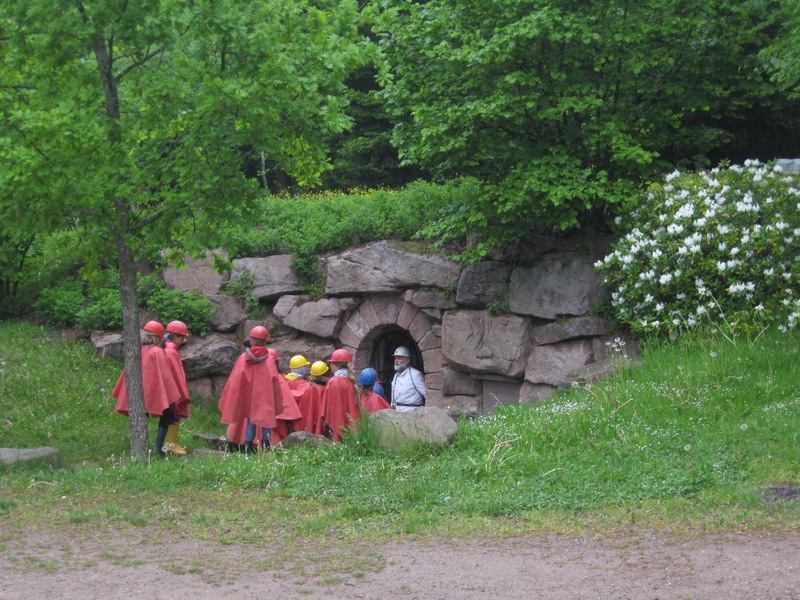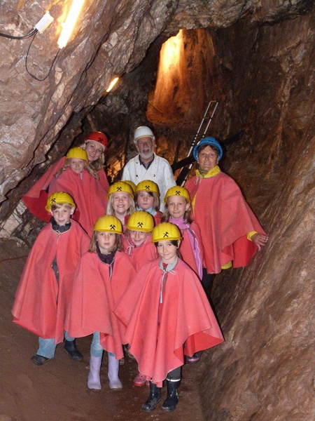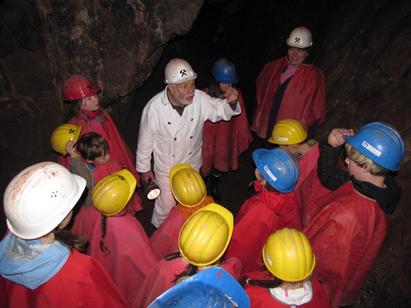 Um festes Schuhwerk wird gebeten, ebenso sollten Sie sich hier warm anziehen. Es wird kalt - die Stollentemperatur beträgt gerade einmal 8°C. Helme und Umhänge erhalten Sie dann vor Ort. Bitte beachten Sie, dass der Stollen zur Zeit noch nicht mit dem Rollstuhl befahren werden kann.