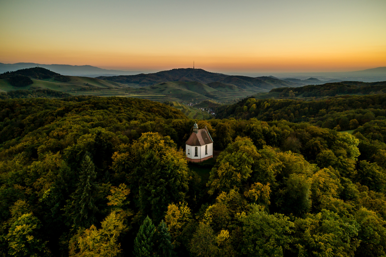 Die Kapelle steht auf dem dritt höchsten Gipfel des Kaiserstuhls, dem gleichnamigen Katharinenberg.