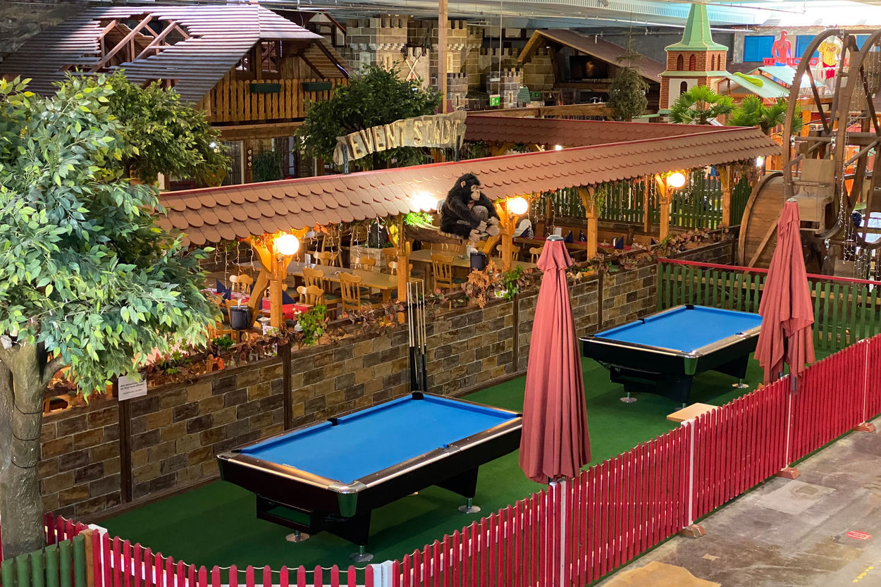 Wer Lust auf Action hat, kann sich beim Laserspaß oder in der Horror-Hoverboard-Bahn austoben. Etwas ruhiger geht es beim Schwarzlicht-Minigolf, Pool-Billard oder Bowling zu.